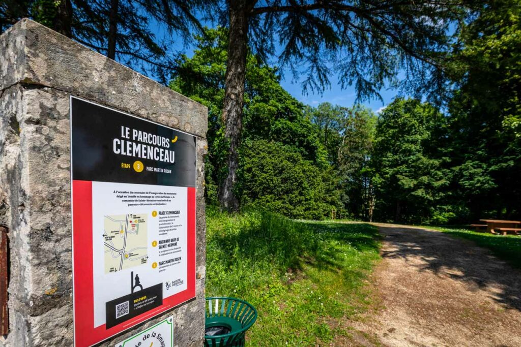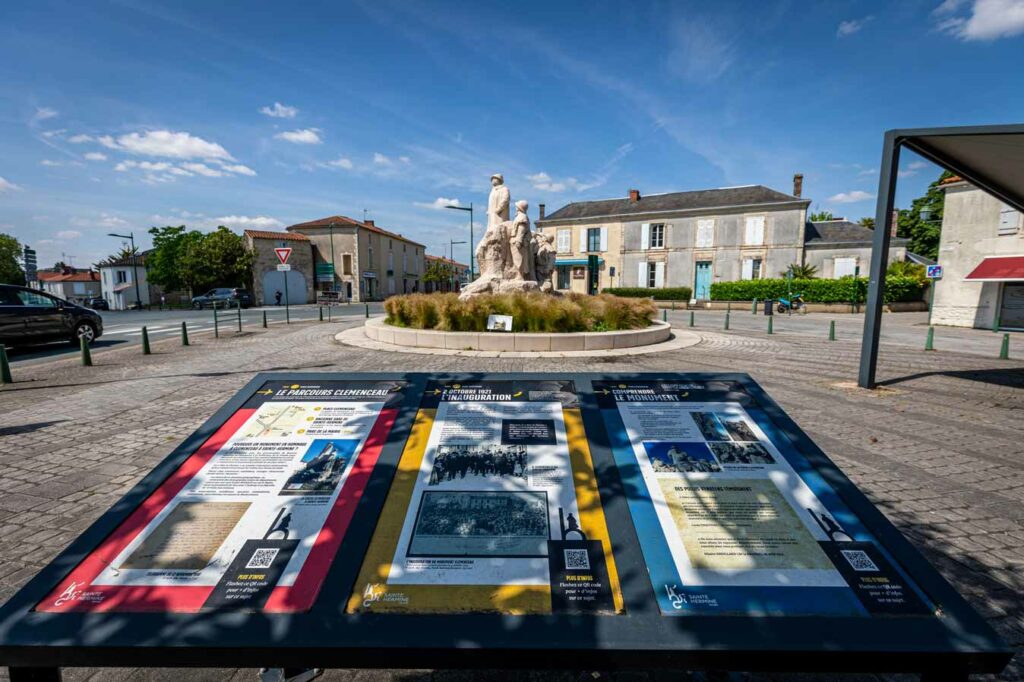Nous avons eu la chance de travailler sur ce projet en équipe avec le conseil des sages de la Mairie de Sainte-Hermine. La réalisation s’est faite en partenariat avec les Ateliers Chenu. Nous avons également réalisé le site web du parcours en équipe avec le conseil des sages. Il est aujourd’hui rattaché au nouveau site de la mairie également conçu par nos soins. www.sainte-hermine.fr/parcours-clemenceau/.